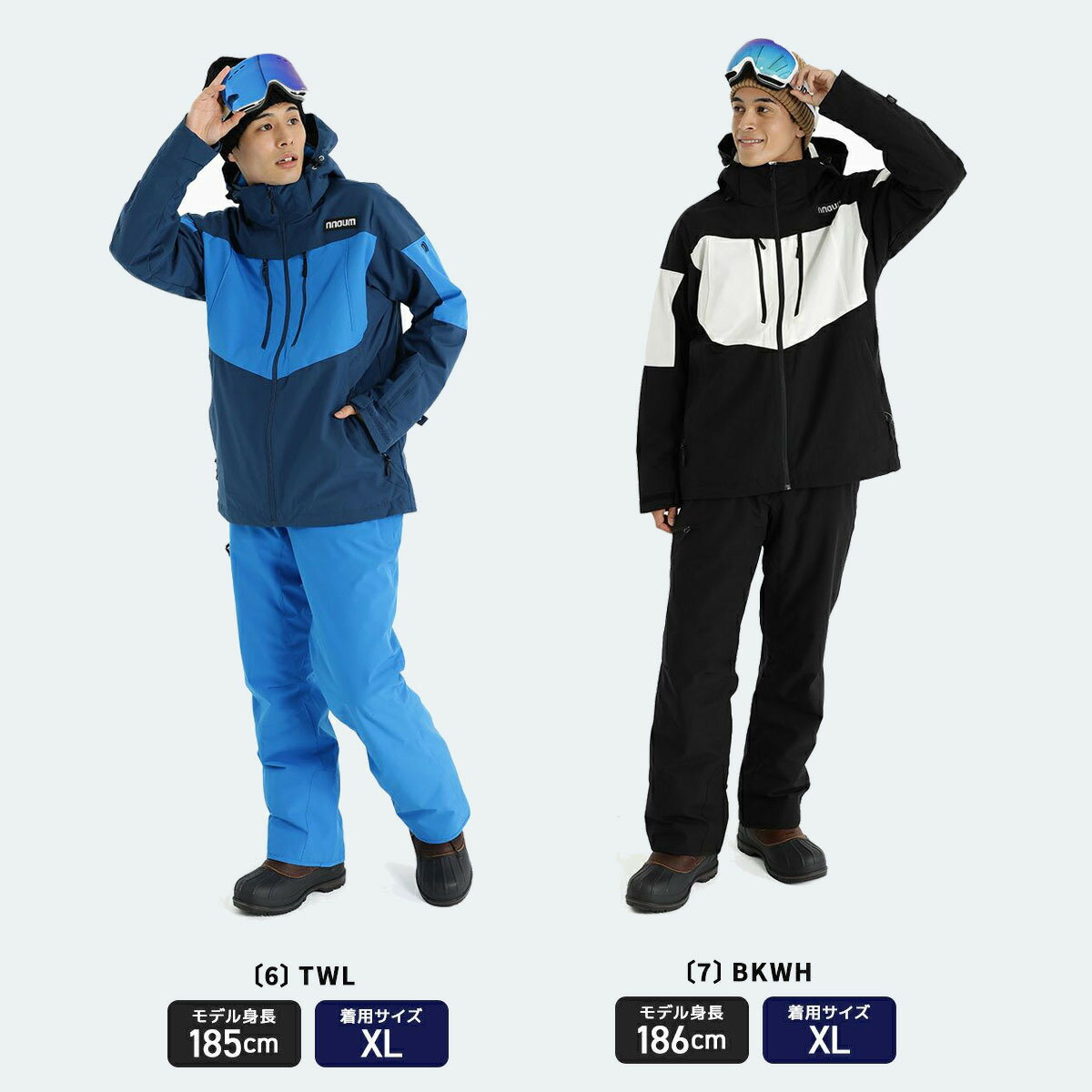 スキーウェア メンズ レディース 上下セット スノーボードウェア スノボウェア スキーウエア NNOUM ノアム 耐水圧20000ml 軽量 防寒 保温 裾丈調節 フード付き 4wayストレッチ ジャケット パンツ おしゃれ かっこいい