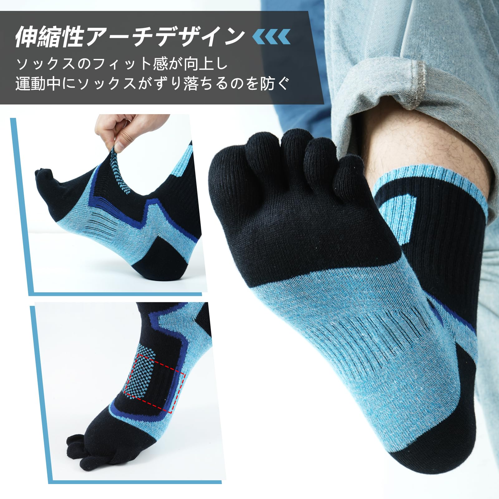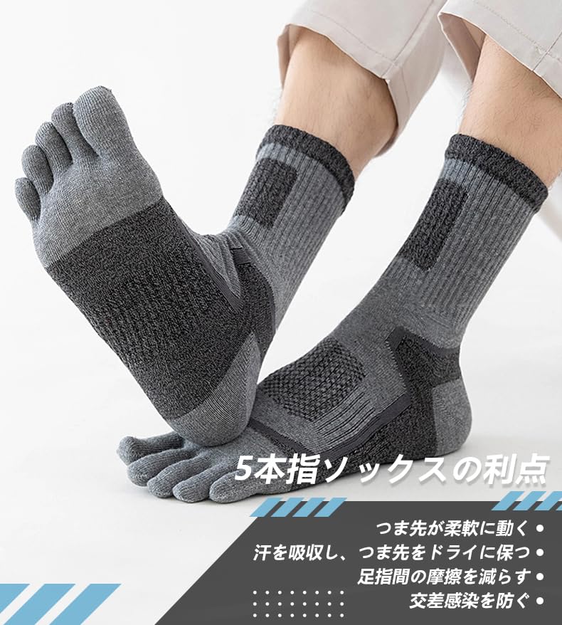 【送料無料】[Yazon] 五本指ソックス メンズ 夏 スポーツ 靴下 ゴルフ 山登り 作業用ランニングソックス 5本指くつした 男性用 カジュアル スポーツソックス 通気 吸汗 夏用メッシュ 五本指靴下 24-27cm 3足セット 色:3color、サイズ:24.0-27.0 cm