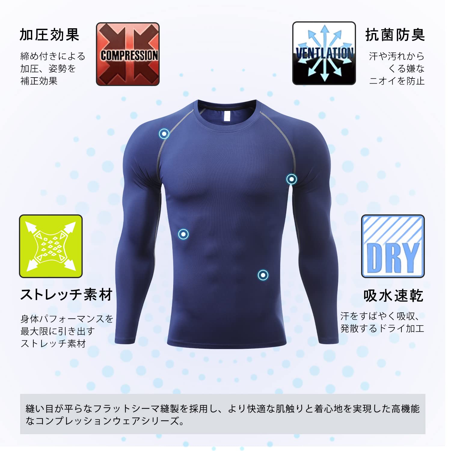 【送料無料】Muxuryee コンプレッション ウェア 加圧シャツ メンズ 長袖 スポーツインナー メンズ アンダーシャツ スポーツシャツ 吸汗 速乾 色:323ネイビー、サイズ:3XL