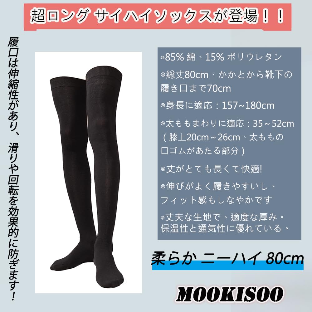 【送料無料】[MOOKISOO] 総丈80cm 女性用 男性用 超ロング サイハイソックス 綿 太もも丈 女装 柔らか 着圧 オーバーニーソックス ロングソックス ニーハイ ソックスコットン 美脚 防寒 防風 保温 靴下 無地 25cm〜28cm 色:ブラック、サイズ:25.0-28.0 cm