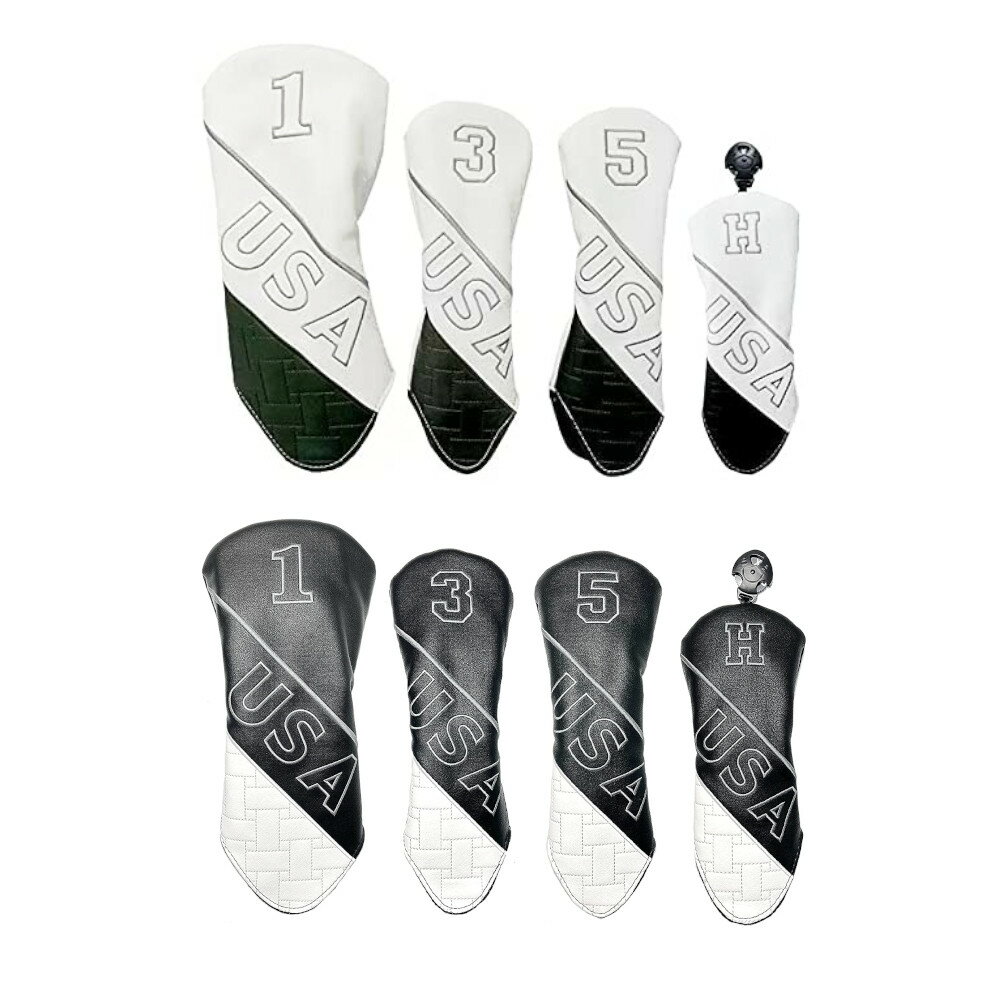 【特価処分品】【バラ売】PUレザー レトロ ホワイトブラック USAヘッドカバー ドライバー フェアウェイ ユーティリティー 防水 刺繍 359-BARA【ゴルフ】【セール品・アウトレット】