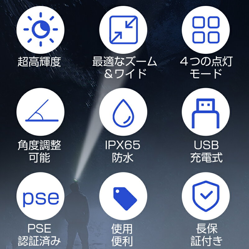 メーカー希望小売価格はメーカーサイトに基づいて掲載しています。ヘッドライト 充電式 、乾電池式 USB 高輝度 ヘッドランプ 2個セット 集光・散光切替 明るさ300ルーメン・200ルーメン/赤色ライト搭載★ 明るさの数値については、積分球と分光測定器を用いて測定した結果です。●簡単な操作:二つのボタンで操作!充電式:左ボタン:白光の4つのモードを切り替えスポットHigh→スポットLow→ワイドH...