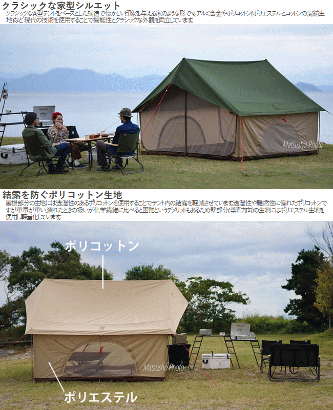 | 商品詳細 商品名:オーナーロッジ タイプ52R T/C メーカー:ogawa/オガワ 品番:2253 JAN:4909232225303 素材:フライ:ポリエステル210d(耐水圧1,800mm) T/C(耐水圧350mm) インナーテント:T/C グランドシート:ポリエステル210d(耐水圧1,800mm) フレーム:スチールΦ22mm 収納サイズ:82x26x40cm 重...