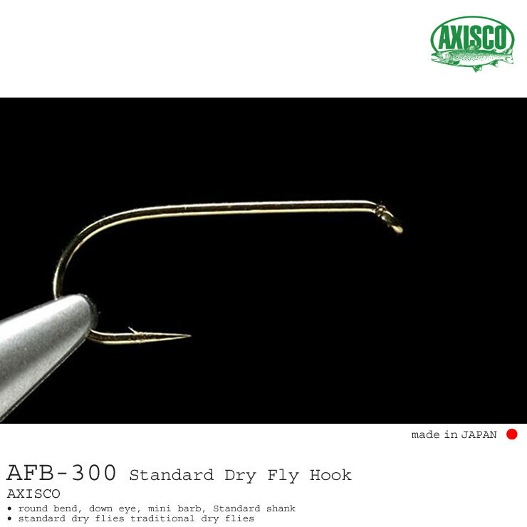 AXISCO / アキスコ AFB-300 スタンダードなドライフライ用 AXISCO AFB-300 Standard Dry Fly Hook Standard wire, Standard gape, round bend, down eye, mini barb スタンダードワイヤー、スタンダードゲイプ、ラウンドベンド、ダウンアイ、ミニバーブ 25本入り 1100よりもクラシックな雰囲気に...