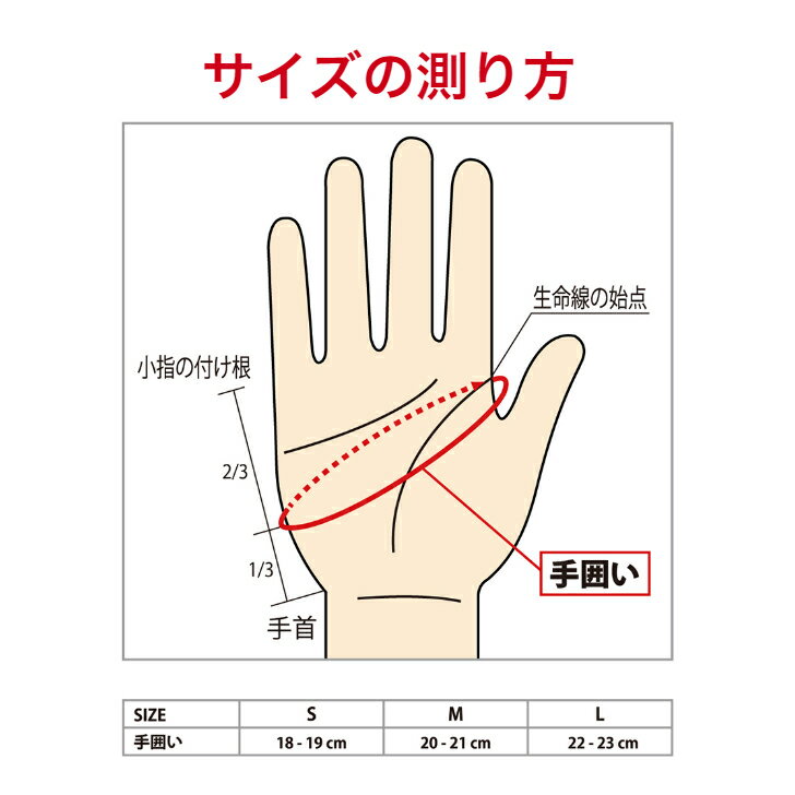 素材:ポリエステル・ナイロン・ポリウレタン。サイズ:m(20〜21cm)、L(22〜23cm)。